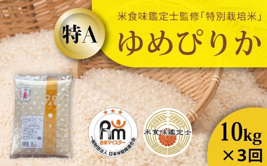 【北海道 農家直送! 米食味鑑定士 三ツ星お米マイスター 栽培 監修 定期便】舟山農産 令和7年産特別栽培米ゆめぴりか 10kg×3回コース 648804 - 北海道当麻町