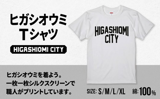 【東近江市公認】 ヒガシオウミを着よう。 一枚一枚シルクスクリーンという技法で職人がプリントしています。 手作業でプリントしていますのでプリントのカスレやズレなどすべてが一点物となっております。 全てのヒガシオウミラバーに贈る!東近江から世界へ! 俺たちの街ヒガシオウミシティ! 【注意】 ・よれにくく、透けにくい丈夫な素材を使用させていただいております。 ・手作業でプリントしているため、プリントのかすれやズレなどが生じる可能性があります。