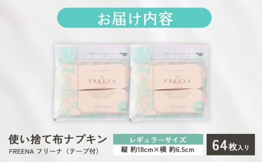 - 使い捨て布ナプキン FREENA フリーナ (布ナプキン) テープ付 64枚入( 32枚入×2個セット) | 使い捨て ナプキン 日用品 消耗品 生理用品 綿100% コットン デリケートゾーン 不快感軽減 ふるさと納税 宮城県 白石市 白石【2315801】
