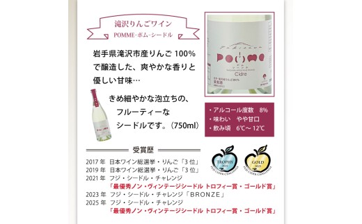 滝沢りんごワイン ポムシードル 750ml 【岩手くずまきワイン】 ワイン 酒 シードル スパークリングワイン お酒 林檎 リンゴ りんご アップル 贈り物 プレゼント ギフト プチギフト バレンタインデー ホワイトデー クリスマス 人気 オススメ おすすめ