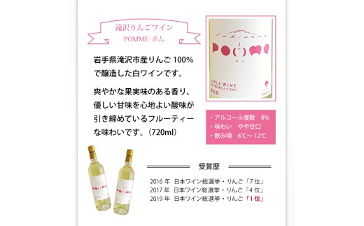 滝沢りんごワイン ポム 720ml 【岩手くずまきワイン】 ワイン 酒 白ワイン 甘口 林檎 リンゴ りんご アップル 贈り物 プレゼント ギフト プチギフト バレンタインデー ホワイトデー クリスマス 人気 オススメ おすすめ