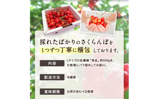 【2026年発送】「秀品」さくらんぼ佐藤錦500g(L玉・化粧箱・バラ詰)_H039(R8)