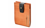 革タブを外すと木のバネで開き、スマートに名刺を取り出せます。