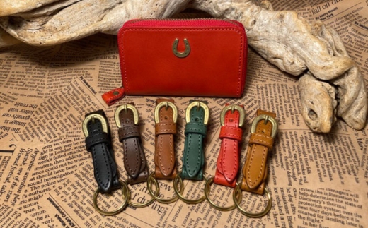 蹄鉄ラウンドファスナーコインケース(レッド)&蹄鉄バックルキーリング (ブラック) 栗東市 / 株式会社ブルズエフ [BIAU348]