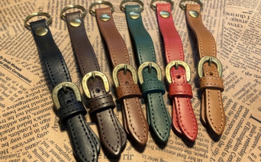 真鍮製の蹄鉄バックルと二重リングを使用したキーリングです。