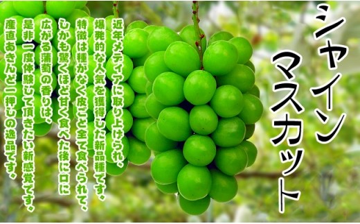 近年メディアに取り上げられ、爆発的な人気を獲得した新品種[シャインマスカット]です。
