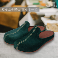 表には柔らかな牛革、裏には牛革のスエード(起毛革)を使い、しっかりとした作りながらも柔らかな足あたりに仕上げています。