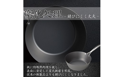 鉄に特殊熱処理を施す事で表面に安定した窒化鉄層が形成され、従来の鉄製品よりもサビにくくなりました。