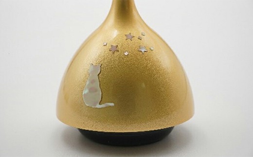 振るおりん。おりん部分の鳴り玉と台を一体化することで、鳴らした後、置いても余韻が残ります。 高岡螺鈿、伝統工芸士に猫を装飾してもらいました。 ※画像はイメージです。 ※柔らかい布でホコリなどを拭いてください。 事業者:公益財団法人高岡地域地場産業センター