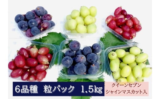 - 【2026年発送分先行予約】6品種の粒パックセット 1.5kg クイーンセブン・シャインマスカット入り 250gパック×6個 8月下旬発送 【配送不可:離島】【※お届け日指定不可】