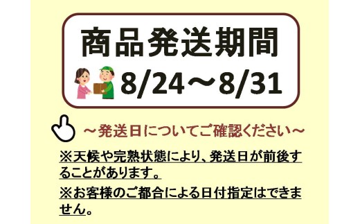 ※順調に生育すれば、8月下旬に収穫発送を行う予定です。台風など天候・完熟状態によっては前後します。
