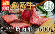 【最短翌日発送】 飛騨牛 ロースまたは肩ロース 焼肉用 600g 牛肉 和牛 肉 焼肉 BBQ ロース カタロース 肩ロース 東白川村 岐阜 贅沢 霜降り 養老ミート 20000円 二万円