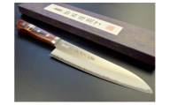 H25-10 青紙三徳包丁165mm 濃州正恒作 黒合板柄 口金付(CA-801M)