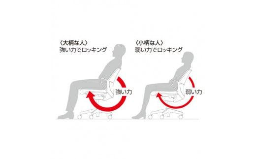 座る人の体重に合わせ、ぴったりなロッキングの強さに変化するオートアジャストロッキングを採用。