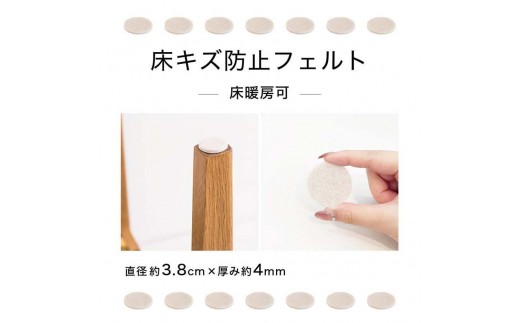 厚さ約4ミリのしっかりフェルトクッションが家具による床へのキズを防止、振動による騒音を軽減します。