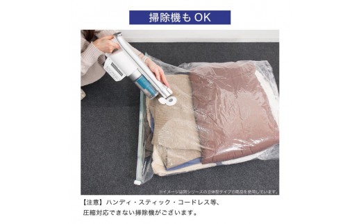 掃除機を使わない手押し圧縮、掃除機を使った吸引圧縮、どちらの使い方も可能です。