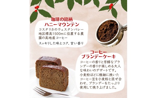 遠山珈琲が厳選したコーヒーとブランデーを生地に練り込み、芳醇な香りに仕上げたコーヒーブランデーケーキです。遠山珈琲こだわりのコーヒーとともにお届けします。