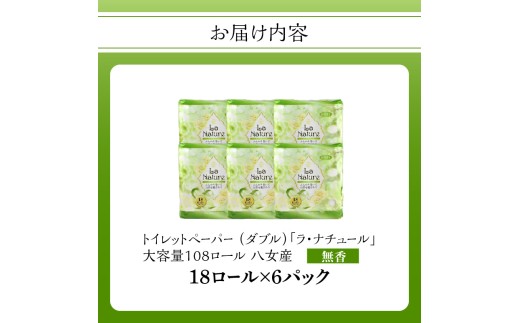 - ★年内お届け★【トイレットペーパー】ラ・ナチュール18ロール×6パック 大容量108ロール 年内配送 年内お届け 2025年 年末 年内発送 八女産 日用品 トイレ用品 生活用品 備蓄 雑貨 セット 人気 おすすめ 送料無料 福岡県 八女市