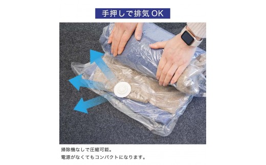 掃除機を使わない手押し圧縮、掃除機を使った吸引圧縮、どちらの使い方も可能です。
