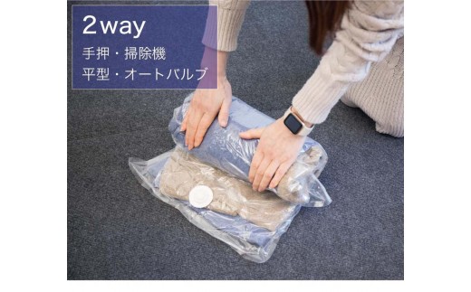 掃除機を使わない手押し圧縮、掃除機を使った吸引圧縮、どちらの使い方も可能です。