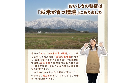 「コシヒカリ」のおいしさの特徴である「味」「つや」「粘り」などを受け継いだ新潟米の優良品種。