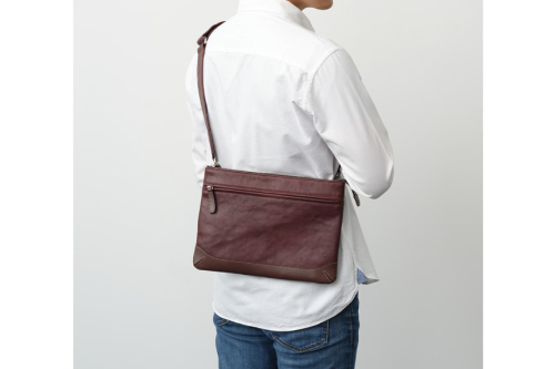 艶やかな本体革は、国産原皮の牛革をタンニンでなめしたヌメ革。 染料で染め上げ、オイルとワックスで仕上げた革は、色の濃淡や奥深さを味わえる透明感が特徴です。 シボの表情も豊かで、部位やバッグひとつひとつ異なります。 スリムショルダーはマチ無しのコンパクトサイズ。 スリムな見た目ですが、口が広く長財布やスマホなど、必需品をまとめて収められ収納力は十分です。 ショルダーは長さ調節・着脱可能。 ショルダーを短くしてサコッシュとして、ショルダーを取り外してクラッチやポーチとしてシーン幅広く活躍します。