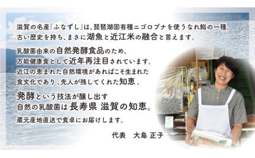 滋賀の名産「ふなずし」を若い方や初めての方にもお試しいただきやすい形にした新商品です。ペースト状で、魚が苦手な方にも、お勧めできるカルシウムたっぷりの自然の発酵食品です。味の種類もそれぞれお楽しみいただけます。