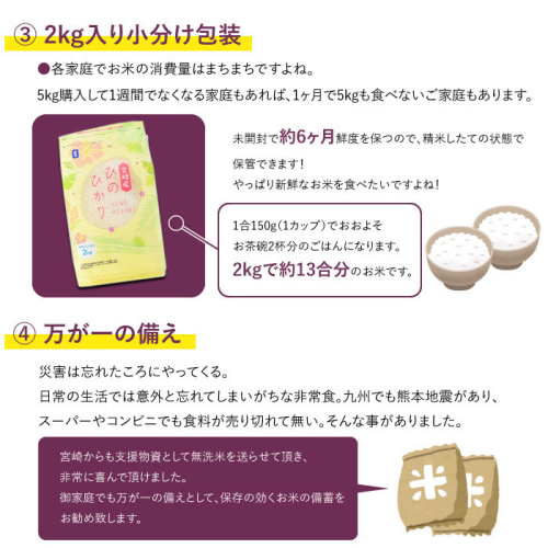 • <令和4年産「宮崎県産ヒノヒカリ 無洗米」2kg×6袋>