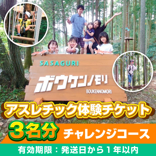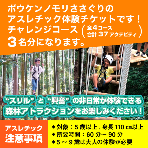 【ボウケンノモリささぐり】アスレチック体験チケット3名分(チャレンジコース) ZZ002