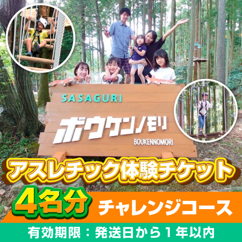 【ボウケンノモリささぐり】アスレチック体験チケット4名分(チャレンジコース) ZZ003