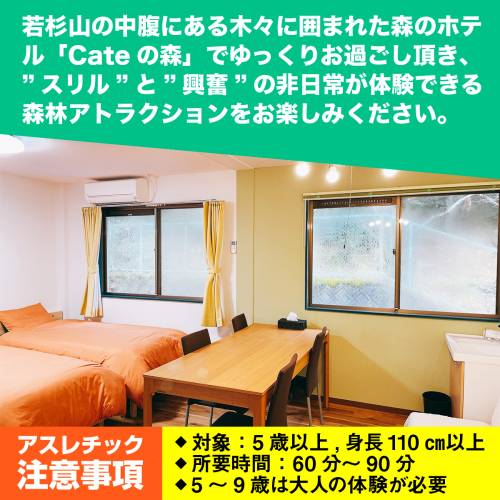 「ボウケンノモリささぐり」のアスレチック体験チケット+「Cateの森」の宿泊(素泊り)セットです。