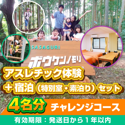 【ボウケンノモリささぐり】アスレチック体験+宿泊(素泊り)セット4名分 ZZ006