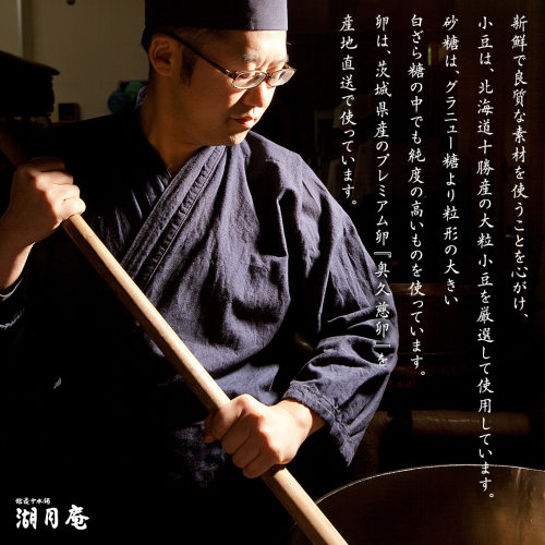 「ほんものがある 心がある 湖月庵の菓子」をモットーに、奥久慈卵や十勝産小豆など素材にこだわって和菓子作りをしています。