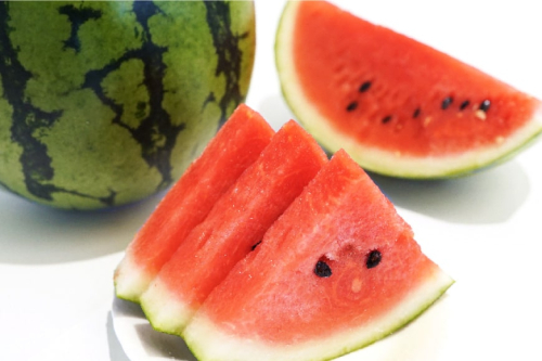「羅皇(ラオウ)」は、甘みが強く、鮮やかな紅色の果肉が特徴の大玉スイカです。(糖度12度前後)