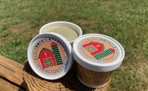 飼育、搾乳、殺菌、販売に至るまでのすべての過程をデンマーク牧場で一貫して行っている自慢のアイスクリームです。ほうじ茶アイスクリームは、地元袋井市産の茶葉を使用しています。ほうじ茶の味わいの中に牧場のミルクが感じられるような仕上りになっています。