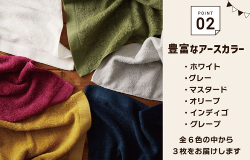 ※このセットは、ホワイト・グレー・マスタード・オリーブ・インディゴ・グレープの全6色の中からランダムでの3枚組となります。
