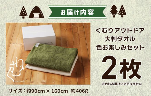 くむりアウトドア 大判タオル 2枚 色お楽しみセット【泉州タオル 国産 吸水 普段使い 無地 シンプル 日用品 家族 ファミリー】 G2625