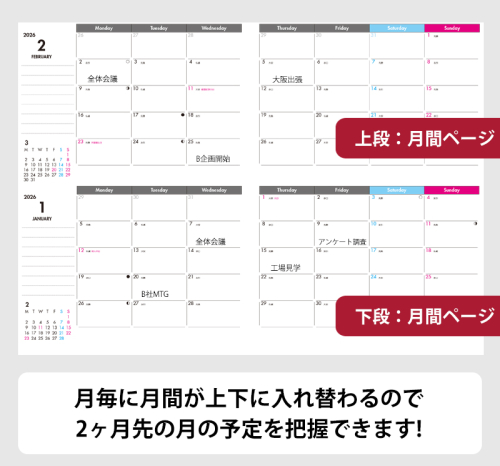 1冊の手帳が上下で分かれている手帳セパレートダイアリーです。