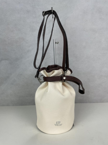 I-20 本革巾着ショルダーバッグ オフホワイト/ブラウン