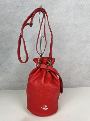 昔からの巾着に発想を得て1本ベルトとDカン(金具)を使い、口元を縛るイメージで作り上げました。