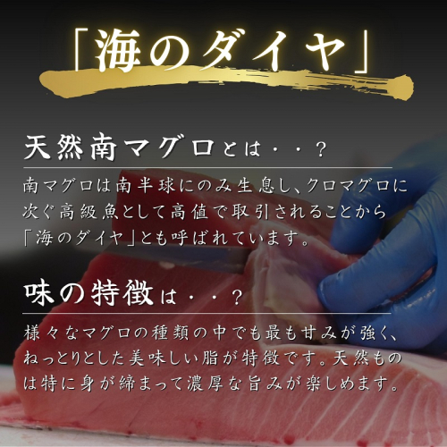様々な種類のマグロを混ぜ合わせるのではなく、主原料を”天然南マグロのみ”にこだわりました。脂のりが良く高値で取引されることから『海のダイヤ』とも呼ばれる南マグロ。