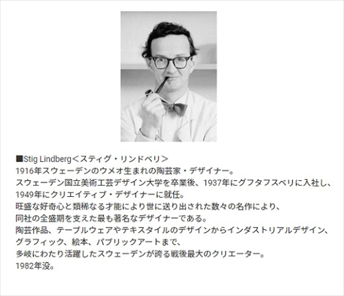 スティグ・リンドベリ。旺盛な好奇心と類稀なる才能により作られた、陶芸、食器、テキスタイル、