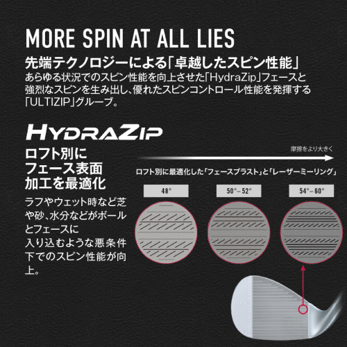 あらゆる状況でのスピン性能を向上させた「HydraZip」フェースと