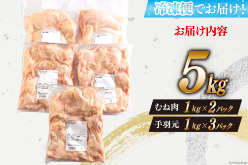 若鶏 むね 手羽元 合計5kg 1kg包装 [アグリ産業匠泰 宮崎県 美郷町 31be0044] 小分け 鶏肉 冷凍 送料無料 炒め物 煮込み 調理 料理 大容量 真空 胸 あっさり ヘルシー 唐揚げ からあげ チキン南蛮 照り焼き 甘辛煮 とり天 ヤンニョム チキン 普段使い 便利 セット 詰め合わせ 2種