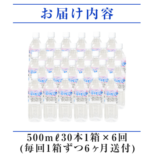 霧島の福寿鉱泉水500mlペットボトル30本箱入を、毎月ひと箱ずつ6回お届けする定期便。