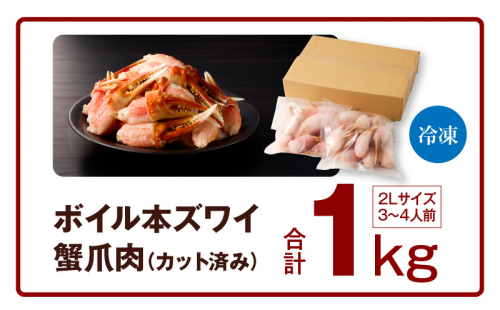 ボイル本ズワイ蟹爪肉 1kg カット済み 2Lサイズ(3-4人前) G1845