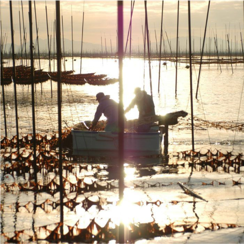 有明海は、広大な干潟が続きます。11月下旬、この有明海にあたり一面海苔畑が広がります。全国各地で海苔の繁殖が行われていますが、佐賀県は品質・生産量ともに、国内トップクラスを誇っています。