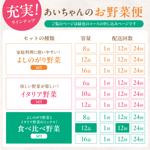 - 【12品×12回定期便】「使いやすい野菜」×「珍しいイタリア野菜」食べ比べセット【吉野ヶ里あいちゃん農園】[FAA030]