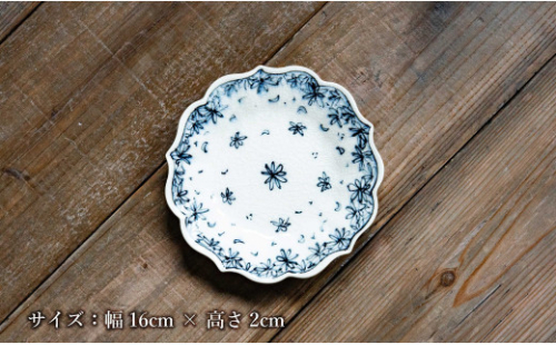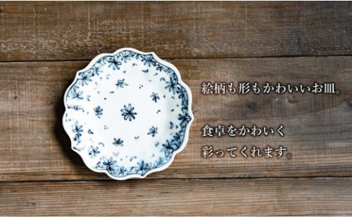 【有田焼】桔梗皿 (小) 小花散 2枚セット 手描き 染付 取り皿 ケーキ皿 食器 喜鶴製陶 山口祥治 35000円 3.5万円 A35-417 1033799 - 佐賀県有田町