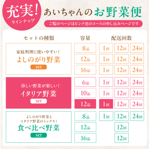 ※野菜の生育状況等により、一度のお届け内容に同種の野菜が重複して入る場合がございます。あらかじめご了承ください。